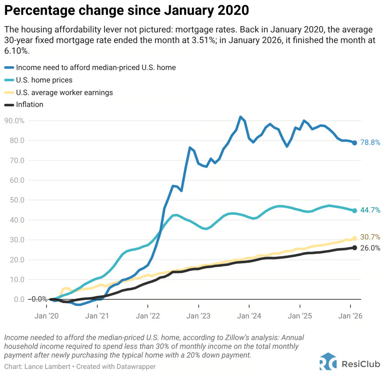 $93,061. That's the annual household income now needed to purchase a typical home in the U.S., according to a new analysis from Zillow. In January of 2020, that number was just $52,000, which is a 79% jump in six years.