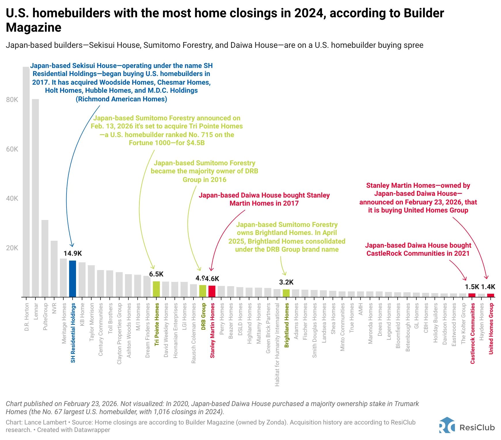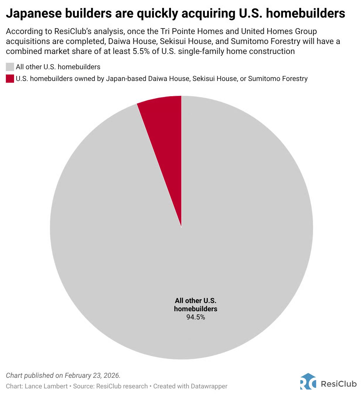 According to ResiClub's analysis, once these deals close, three Japanese firms will control at least 5.5% of all U.S. single-family home construction.
