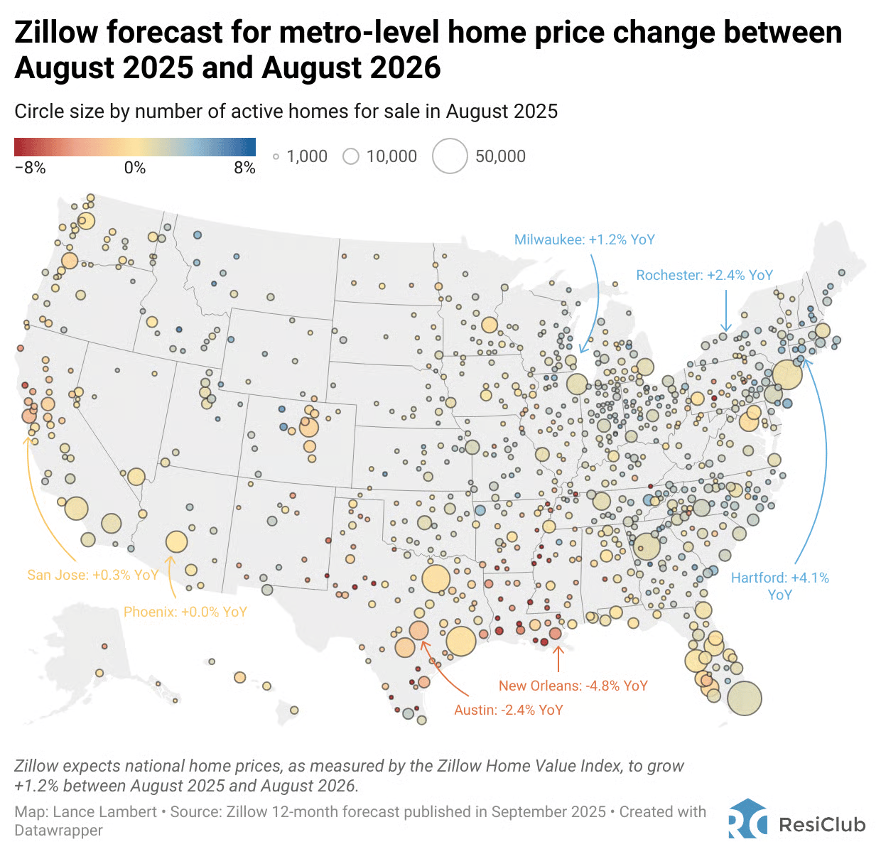 Big news just dropped from Zillow—U.S. home prices are now forecasted to rise by 1.2% over the next 12 months. That’s a slight bump up from earlier, more cautious projections, and it’s a sign the real estate market may be stabilizing after a year of uncertainty.